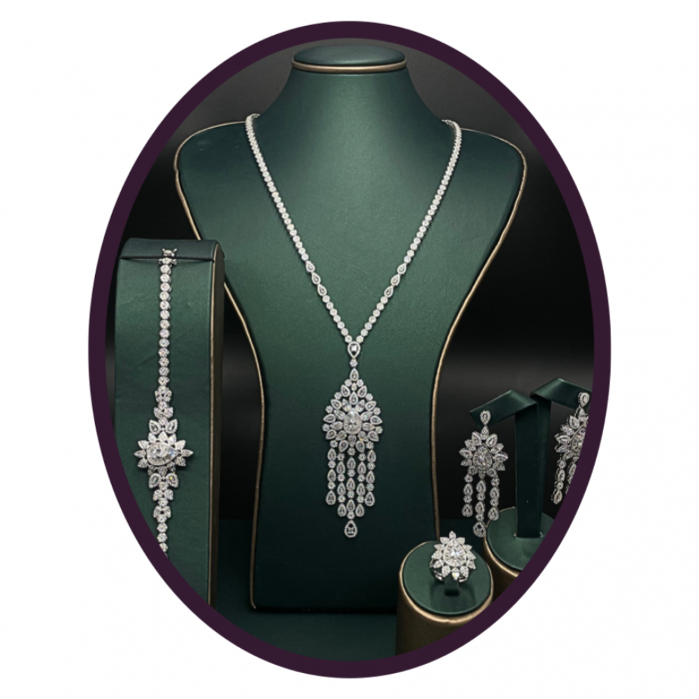 يحتوي الطقم على 4 قطع (عقد, اسوارة, حلق, خاتم ).